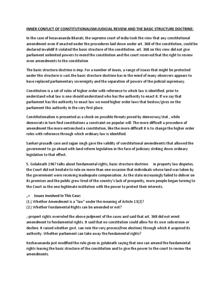 Inner Conflict of Constitutional Ism basic structure doctrine has been declared by the supreme court in